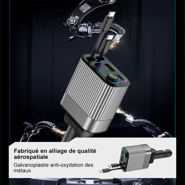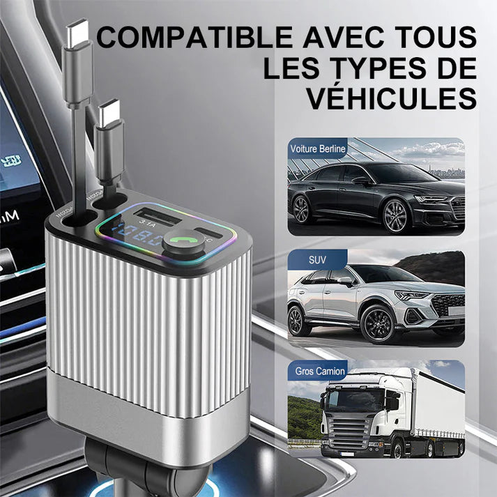DOUBLE CĂBLES RĂTRACTABLES - ĂquipĂ© de deux cĂąbles de charge Type-C rĂ©tractables (prise en charge de la charge rapide PD 20W), ce rĂ©cepteur Bluetooth permet une recharge facile en un seul geste. Dites adieu aux cĂąbles emmĂȘlĂ©s et profitez dâune recharge rapide et efficace pour votre tĂ©lĂ©phone.