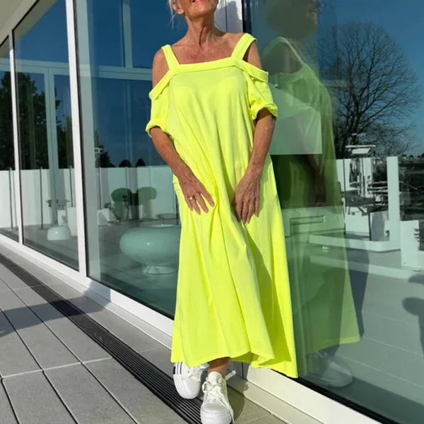 DESIGN ÉPAULES DÉNUDÉES CHIC : Cette robe présente une découpe épaules dénudées tendance qui lui confère une touche chic et féminine. Son design élégant vous permet de rester au frais tout en apportant une touche moderne et élégante à votre look.
