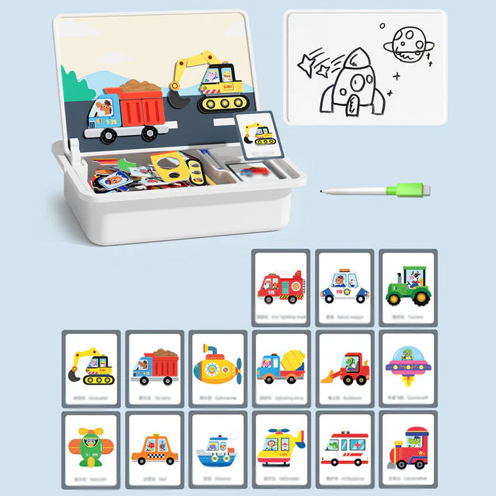 Boîte à puzzle magnétique pour enfants avec jeu et planche à dessi