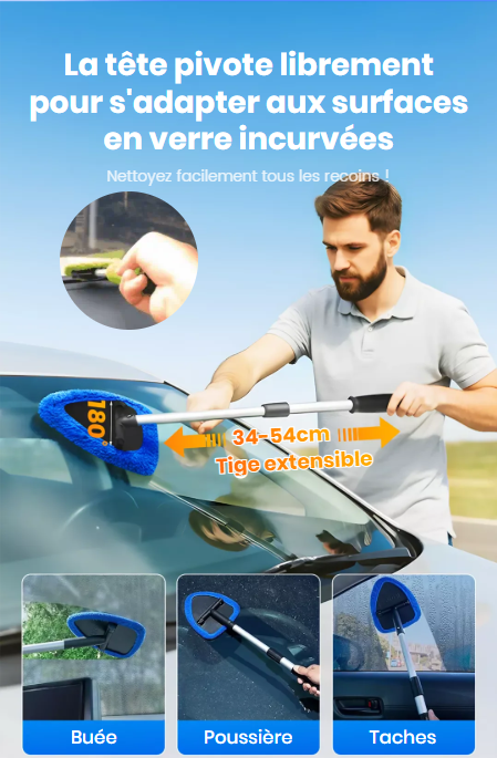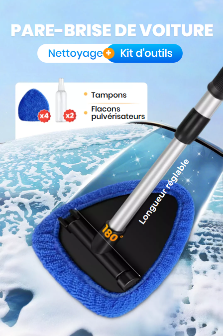 Kit de nettoyage pour pare-brise de voiture – Extensible et rotatif à