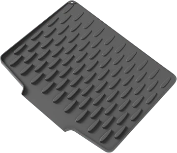 CONCEPTION DE L'ÉCOULEMENT DES EAUX DE RUISSELLEMENT – Les canaux concaves et convexes accélèrent l'écoulement de l'eau pour un séchage rapide. Les grilles surélevées soulèvent les objets et permettent un drainage complet, gardant le plan de travail sec et hygiénique.